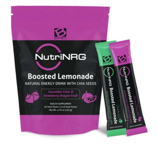 Power up your body and mind! NutriNRG® is a boosted lemonade, natural energy supplement drink that not only tastes great but is also great for you. Bursting with flavor, our power-packed lemonade boosts the body and mind for hours. Plus, it is loaded with superfood chia seeds, vitamins and minerals. Each pack comes with a mix of two mouth-watering lemonade flavors: Cucumber Lime and Strawberry Dragon Fruit.